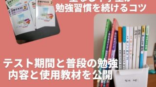 塾なしで中学2年生の家庭学習をサポートしている我が家の最新の勉強方法を紹介。テスト期間と普段の勉強内容の違い、平日・休日の学習ルーティン、使用教材、直しノートの活用法、勉強習慣を無理なく続けるコツまで詳しくまとめました。