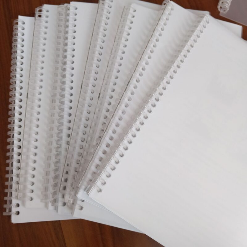 クリアファイルを使って綴じています。