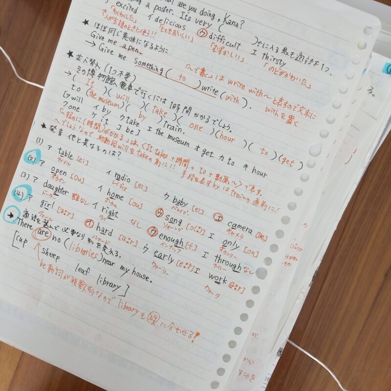 直しノートはルーズリングを外して解体し